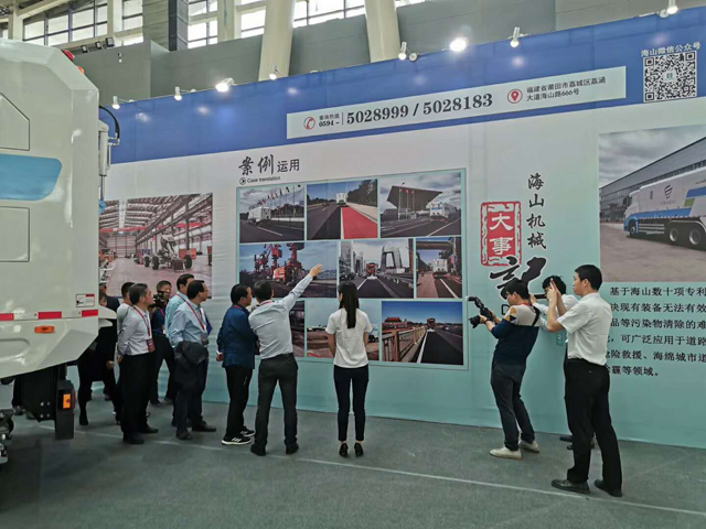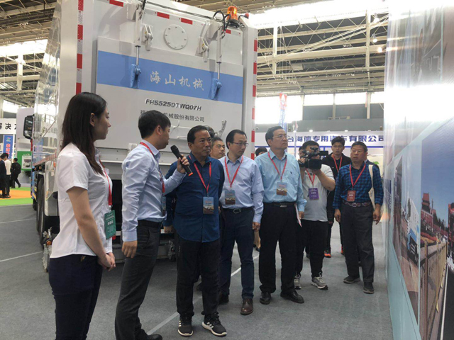 海山機(jī)械作為非破壞挖掘技術(shù)首創(chuàng)者應(yīng)邀參加此次博覽展,展示目前國內(nèi)最先進(jìn)的重型道路污染清除車,令與會專家學(xué)者和專業(yè)用戶感到震撼,并受到中國環(huán)衛(wèi)科技網(wǎng)獨(dú)家采訪。