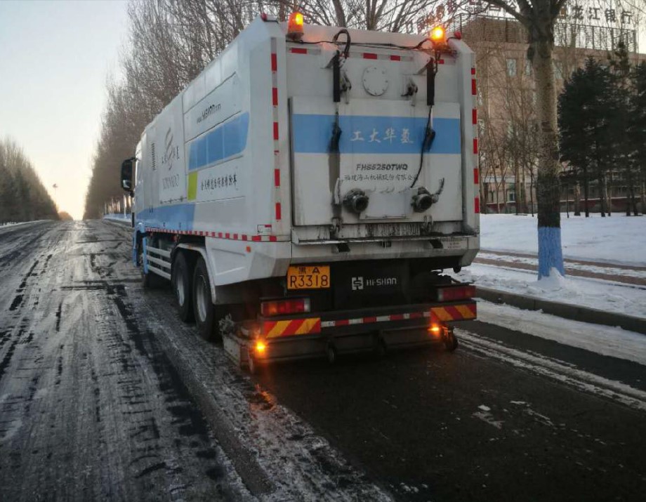 海山機(jī)械自主研發(fā)的道路污染清除車,對(duì)解決道路積垢、板結(jié)、油污、生化品等污染物清除的難題,以及道路機(jī)能恢復(fù)、降噪、延長道路使用壽命及降低PM2.5揚(yáng)塵污染有顯著成效。除此之外,眾多關(guān)鍵技術(shù)的結(jié)合解決了冬天路面薄冰難除、易發(fā)生交通事故的難題,有效減少或避免每年因人工除冰作業(yè)時(shí)發(fā)生的人員傷亡事故,大幅降低環(huán)衛(wèi)人員傷亡率及相關(guān)財(cái)產(chǎn)損失。
