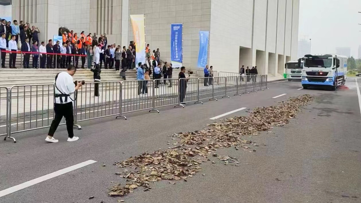 ▲18T多功能道路污染清除車超強(qiáng)的落葉收集功能,優(yōu)質(zhì)的作業(yè)效果,讓現(xiàn)場(chǎng)的嘉賓連連稱贊
